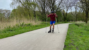Vervolgens lopen we gezamenlijk in ongeveer 2 min naar een pleintje waar we rustig de skikes kunnen aantrekken en de beginselen van het skiken kunnen aanleren. Na ongeveer 15 min zullen we het park in skiken en verschillende technieken aanleren die passen bij het terrein waar we ons dan bevinden.